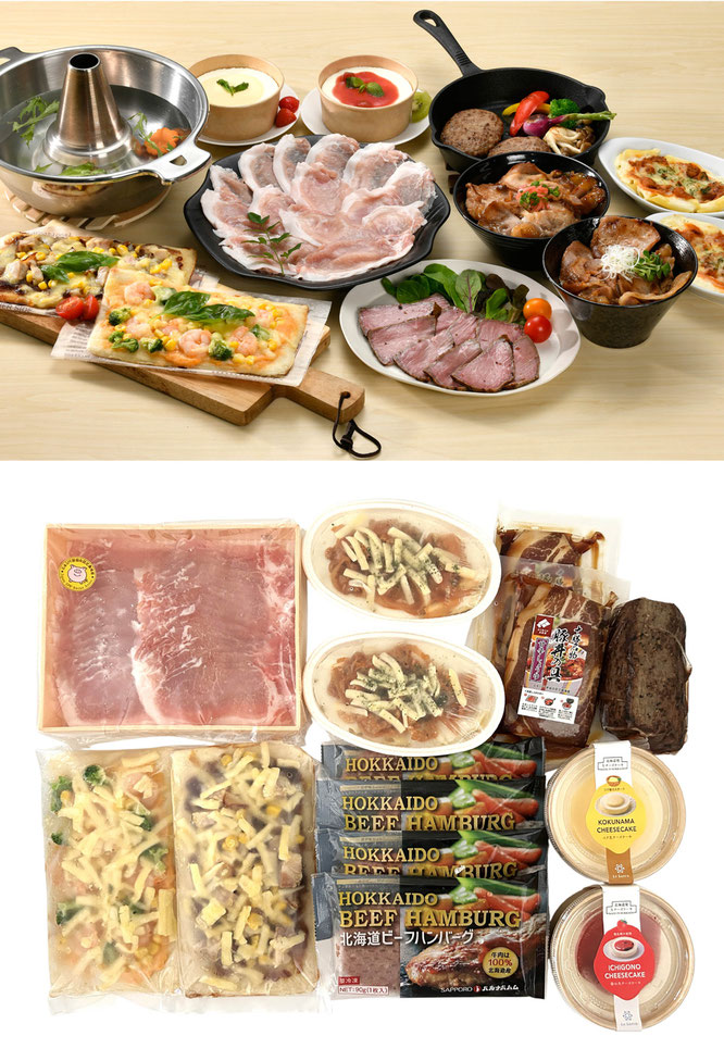 北海道産の豚肉はさっぱりと楽しめるしゃぶしゃぶと豚丼で、牛肉は「大沼黒牛」を使用したオリジナルローストビーフと、ビーフ100%のハンバーグを選択。お肉の美味しさをたっぷりと味わえるだんらんセットです。グラタンにピザ、スイーツも楽しめてお子様にもおすすめです。